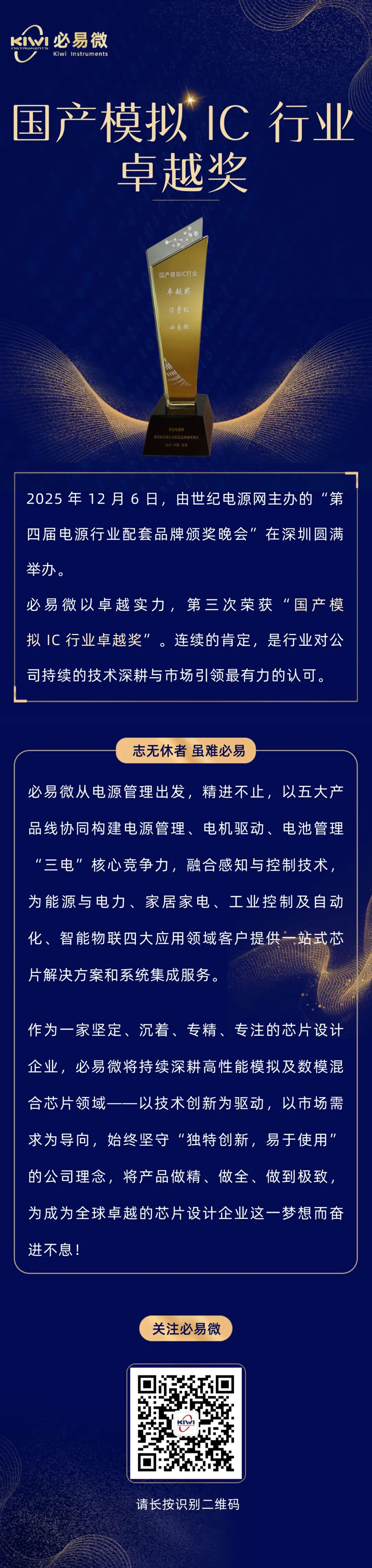 必易微三度榮獲“國(guó)產(chǎn)模擬 IC 行業(yè)卓越獎(jiǎng)”
